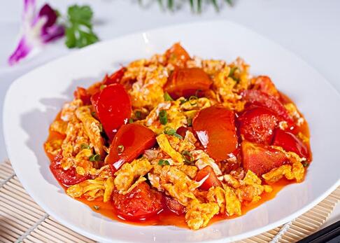 9、鸡蛋炒西红柿是营养素互补得很不错实例。在丰富营养的同时,还具有健脑抗衰老的做用。