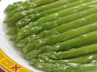 3、热锅,倒入色拉油,大火快炒芦笋段,颜色变得翠绿时加入盐、味精翻炒均匀