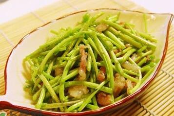 芦蒿摘去老的部分和叶片,摘成小段可以炒肉或是其他的。