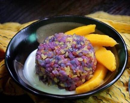 其特色是色泽鲜艳、五彩摈纷,晶莹闪亮,滋润柔软,美味可口。五色糯米饭既是小吃,有可防病、治病,深受广西各族人民的喜爱。