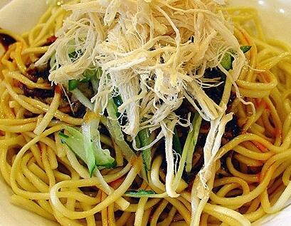 做法:1.面条下入开水中煮熟捞出过凉开水,沥干水分,拌上香油。
