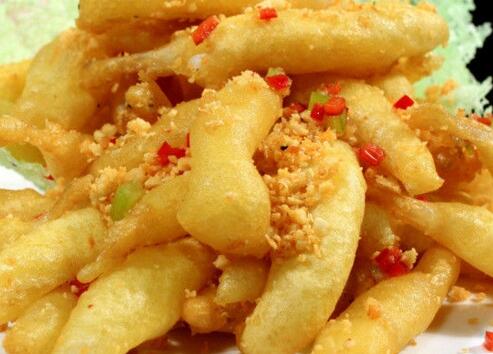 1、裹糊:软体类的鱼适合炸烹技法,通过裹糊及二次复炸,一定要把面条鱼炸硬实了,就不容易碰碎。