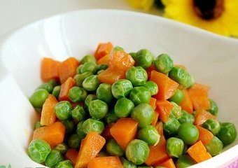 胡萝卜是一种质脆味美、营养丰富的家常蔬菜,素有“小人参”之称。胡萝卜富含糖类、脂肪、挥发油、胡萝卜素、维生素A、维生素B1、维生素B2、花青素、钙、铁等营养成分。豌豆味甘、性平,归脾、胃经;具有益中气、止泻痢、调营卫、利小便、消痈肿、解乳石毒之功效。