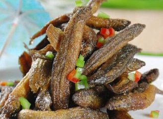 4.把多余的油倒掉,锅里留底油,再把炸好的泥鳅鱼放入,依次倒入备好的多种佐料炒,两分钟后取出,放晾,即可食用。