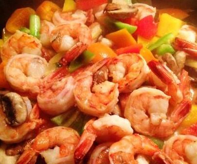 3、锅中烧热油,待油温六成热时放入虾翻炒。