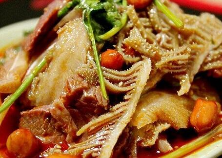 关键: 牛肉、牛杂必须反复洗净,去除异味。用于拌制牛肉和牛杂的卤汁要浓,使其得味起鲜。