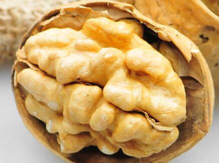 观察核桃仁:任意挑选一个核桃,砸开,观察里面的核桃仁,若是外面的黄皮色泽艳,特别饱满,则此核桃必定是好核桃。若是核桃仁呈黑色或者棕色或者有黑斑,这种核桃还是少买为好。