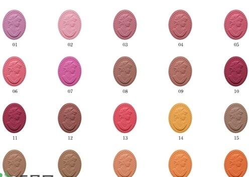 浮雕腮红颜色好多选择,大热的色号就是 02 07 11 13 18 19 20 还有限量的002 001 也蛮抢手的。还有春季限量的MINI盘也很不错,性价比高,但是包装就简单些,不影响使用,它家以美貌著称,外貌协会的孩子很难抗拒。