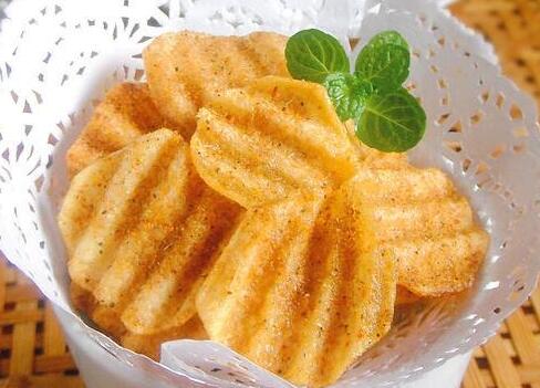 常见薯片是由土豆经过切片、在高温下与油一起加工制成,一般含有30%-40%脂肪。依口味不同,一些品牌薯片中还含较高盐。