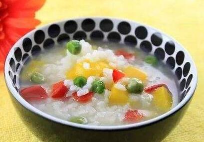 材料:熟虾仁、嫩豆腐、鲜豌豆、厚粥、适量高汤、熬熟植物油