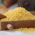 小米别称:粟米、稞子、秫子、黏米、白梁粟、粟谷。小米也称为谷子、粟等,其淀粉含量高(约70%),是一种能量食物。铁和维生素B1的含量优于小麦、大米和玉米,膳食纤维在粗粮中偏低,口感较为细腻。和其他谷物一样,小米中钙、维生素A、维生素D、维生素C和维生素B12含量很低。蛋白质含量在不同类型的小米中变动很大,一般介于5%-20%之间,平均为10%-12%。黄色小米含有叶黄素,对维护视力和预防心脏病有益。用小米熬粥营养价值丰富,因此小米粥有“代参汤”之称,小米可单独煮熬成粥,亦可添加大枣、红豆、红薯、莲子、百合等,熬成风味各异的营养粥品。因为小米性质是碱性的,所以烹煮时,不需要加太多的盐或干脆不用盐煮。小米磨成粉,可制美味糕点,亦可与豆粉等混合制作糕点。此外,小米还可制米酒,味美醇厚。