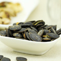 南瓜子是嘴上的美食,大众的健康食品!南瓜子是南瓜的种子,含有非常丰富的脂肪酸、铁、锌、镁、锰等营养物质和健康的脂肪。南瓜子最突出的作用是保持前列腺有良好功能,南瓜子里面的活性成分能有效消除前列腺炎的肿胀感,长期坚持吃,还能有效预防前列腺癌,男人们吃起来!除此之外,南瓜子还有驱虫的功效!蛔虫、钩虫、血吸虫、绦虫病、蛲虫一网打尽,有这些病的人不妨经常吃。需要注意的是,南瓜子可以经常吃,但每次不能多吃,南瓜子本身无毒,但若过多食用会导致头昏,且容易产生脘腹胀闷的症状。有很多网友都反应,南瓜子好吃,就是壳难剥,如果是用来入菜的话,这里有个妙招:用指甲钳剪瓜子的一遍,放置一个晚上,第二天用大拇指沿着剪开的那一边一剥,瓜仁轻松取出。
