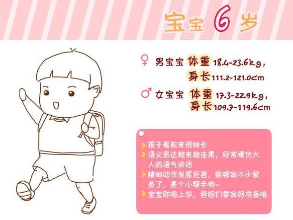 宝宝出生后从第一周到6岁生长指标图,包括身高、体重、行为等,让麻麻更直观的了解宝宝的发育情况。