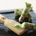 芥末,又称芥子末、山葵、辣根、西洋山芋菜,芥辣粉,哇沙比,是芥菜的成熟种子碾磨成的一种粉状调料。芥末微苦,辛辣芳香,对口舌有强烈刺激,味道十分独特,芥末粉润湿后有香气喷出,具有催泪性的强烈刺激性辣味,对味觉、嗅觉均有刺激作用。可用作泡菜、腌渍生肉或拌沙拉时的调味品。亦可与生抽一起使用,充当生鱼片的美味调料。芥末有很强的解毒功能,可以起到杀菌和消灭消化系统寄生虫的作用,能解鱼蟹之毒,故生食三文鱼等海鲜食品经常会配上芥末。