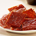 猪肉脯是猪肉或牛肉经过腌制、烘烤的而形成的片状肉制品,其中以靖江生产的最为出名,好的猪肉脯棕红色,肉脯切片均匀,含水为13.5%,蛋白质46.5%,脂肪9%,吃起来口感丰富、咸中带甜、很香很有嚼劲。猪肉脯很方便携带、食用方便、美味可口、耐储存,所以深得人们的喜爱。另外它营养价值也很高,含有丰富的蛋白质,里面含有人体所学的十几种必须氨基酸、多种活性酶和钙铁磷等微量元素。不过由于猪肉脯是加工过的食物,里面添加了防腐剂和添加剂,对胎儿的发育和成人的健康不是很好,所以孕妇最好不要吃过多或者不吃。另外它里面还含有亚硝酸钠,长期食用可以会容易致癌,因此不管是大人还是小孩,都应适量。
