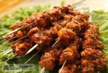 烤羊肉串是一种风味小吃,将羊肉用盐和各种调味料香料腌制后,在炭火上炙烤而成。肉质鲜嫩,味咸辣。