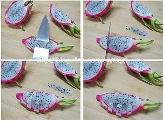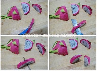 上面就是生吃火龙果五不同的切法,每一种都有自己特色,这样你在厨房就可以做各式各样不同美味的火龙果大餐了,这几种切法是最简最简漂亮的切法了,都是家中最容易实现。