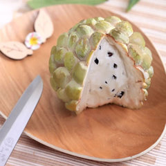 PS:释迦果未软熟前绝不可放入冰箱冷藏,否则将变黑变硬。吃法大概就像吃西瓜一样,纵向剖开后切片食用。
