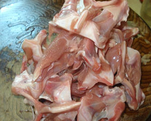 做法: 1、下姜片爆香,放干辣椒,入鸭锁骨,点点料酒或白酒均可,翻炒片刻,变色就成。