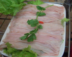 将鸭胰洗净,放入开水中汆透,剁去鸭胰头,将筋抽出,可以用来做菜肴原料。