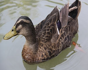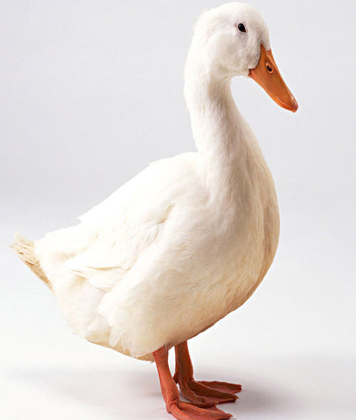 鸭子,有野鸭,家鸭之分。野鸭的体型相对较小,颈短,常年生活在水面上,潜水能力较强,以水中小动物为食。家鸭体型相对野鸭较大,生活在水中或陆地,依水中的小动物,植物为食。鸭子体型较小,羽毛较短,飞行距离有限。