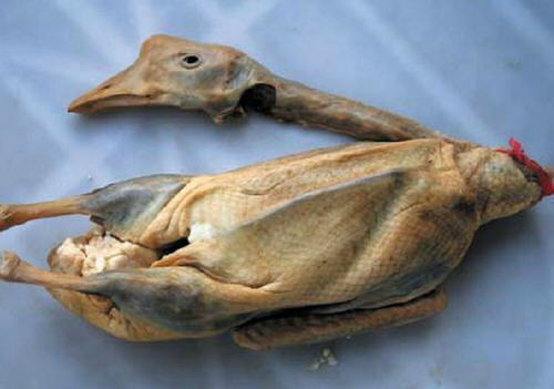 腊鹅,有的地方加工时采用干拔羽毛的办法,可是注意不要把皮搞坏.;多数人对腊鹅的吃法是皮和脂肪蒸食,瘦肉煎食,骨头煮食,煮时入芸豆或花生米味道更佳,但是注意鹅宰杀时前禁食1至2天,可喂一些淡盐水。