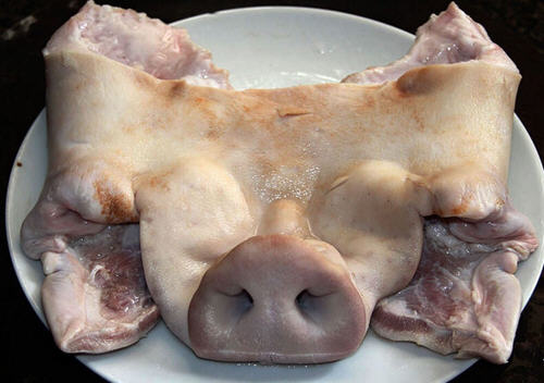 猪头皮,不但韧性好,而且色香味俱佳。猪皮的蛋白质含量很高,对人的皮肤、筋腱、骨骼、毛发都有重要的生理保健作用。,科学家们发现,经常食用猪皮或猪蹄有延缓衰老和抗癌的作用。因为猪皮中含有大量的胶原蛋白,能减慢机体细胞老化。尤其对阴虚内热,出现咽喉疼痛、低热等症的患者食用更佳。