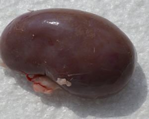 羊肾,为牛科动物山羊或绵羊的肾脏,又名羊腰子、羊肾子。剖开洗净用。有一定药用价值和食疗价值。