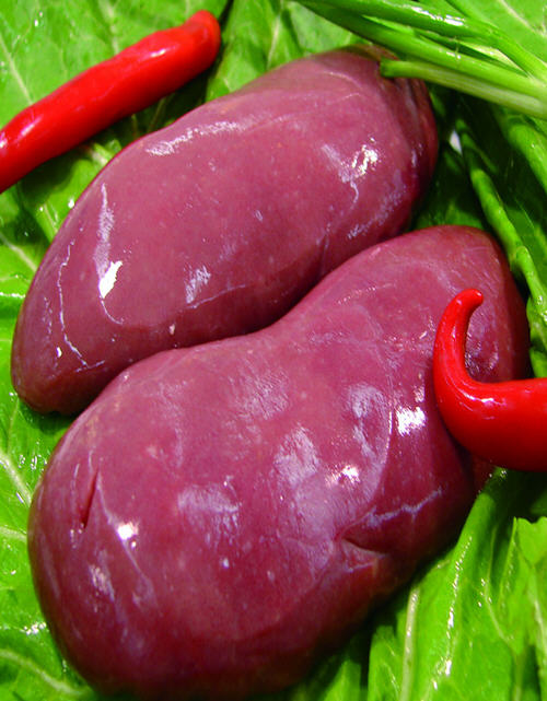 新鲜猪腰有层膜,光泽润泽不变色。腐败变质的猪肾色泽灰绿,组织松驰,弹性差,有臭味。