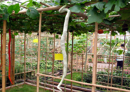 5、蛇瓜少有病虫危害,可成为无公害蔬菜,具有一定的市场潜力。
