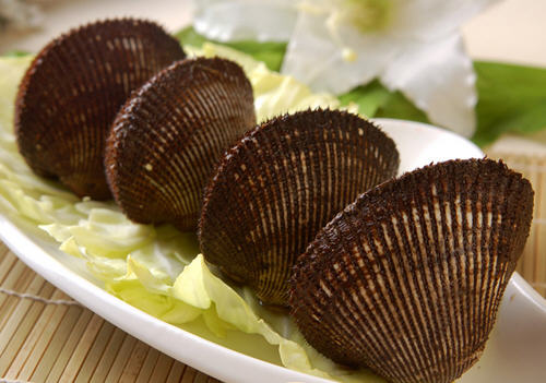 2.鲜度极好的赤贝肉为海鲜火锅之原料,也可以蘸芥末、芝麻酱、醋等调料生吃,或与青椒、黄瓜等混炒,均别具风味。