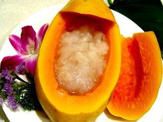 番木瓜鲜美兼具食疗作用,尤其对女性更有美容功效。番木瓜所含的蛋白分解酵素,可以补偿胰和肠道的分泌,补充胃液的不足,有助于分解蛋白质和淀粉。番木瓜含有胡萝卜素和丰富的维生素C,它们有很强的抗氧化能力,帮助机体修复组织,消除有毒物质,增强人体免疫力,帮助机体抵抗包括甲流在内的病毒侵袭。番木瓜果实中的有效成分能提高吞噬细胞的功效。[7]