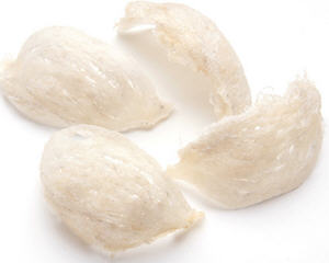 3.摸:取一小块燕窝以水浸泡,松软后取丝条拉扯,弹性差,一拉就断的为假货;用手指揉搓,没有弹力能搓成浆糊状的也是假货。
