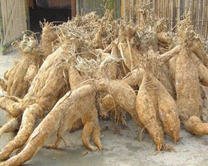 2.粉葛根为甘葛藤的块根,呈圆柱形或类纺缍形,有的为纵切、斜切的厚片,大小不一。除去外皮的表面黄白色或淡黄色,未去外皮的呈灰棕色。质坚硬而重,纤维性弱,有的呈绵毛状,全粉性。以块大,质紧实,粉性足者为佳。