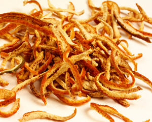 陈皮的苦味物质是以柠檬苷和苦味素为代表的“类柠檬苦素”,这种类柠檬苦素味平和,易溶解于水,有助于食物的消化。陈皮用于烹制菜肴时。其苦味与其他味道相互调和,可形成独具一格的风味。陈皮含有挥发油、橙皮甙、维生素B、C等成分,它所含的挥发油对胃肠道有温和刺激作用,可促进消化液的分泌,排除肠管内积气,增加食欲。陈皮也是一味常用中药,具有通气的健脾、燥湿化痰、解腻留香、降逆止呕的功效。