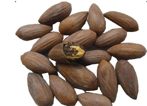 香榧的果实为坚果,橄榄形,果壳较硬,内有黑色果衣包裹淡黄色果肉,果肉饱满为佳。