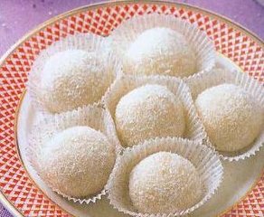 4、取薯皮压薄成圆形状,包裹馅料后,捏成面上突皱的球形。