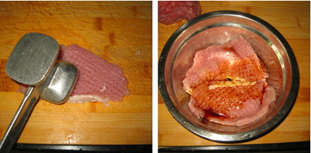 1、通脊肉要有肉锤将肉质拍松,这样炸好的猪排才嫩;