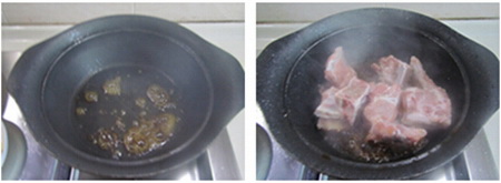 2.用冰糖炒糖色,排骨表面会更油亮些;注意炒糖色的火候,不要将糖炒过了,那样吃起来排骨就会有焦味;