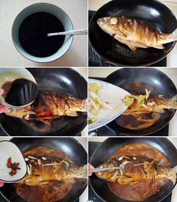 4. 红烧鱼一定要先将鱼煎至金黄,表面有一层薄薄的硬皮时再烧才好吃。
