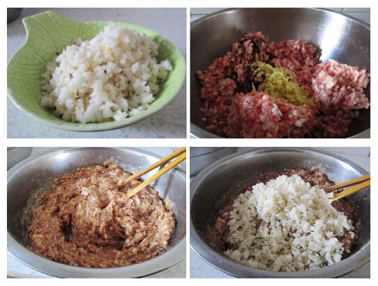5、可以根据自己的喜欢来添加,我家一般用五香粉,香油,酱油,盐,鸡精葱姜料酒来调制肉馅。