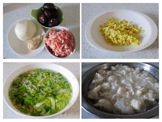 7、加入适量的葱水顺一个方向搅拌上劲。