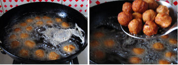 12、待所有的丸子都放入锅中,炸到定型,捞出.