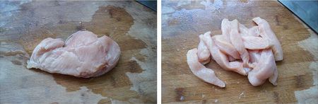 3、鸡胸肉加生抽,料酒,胡椒粉,适量盐,蛋清,少许生姜丝