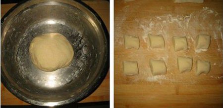 1、面粉中分别加入适量开水和凉水和成半烫面团后进行醒面;