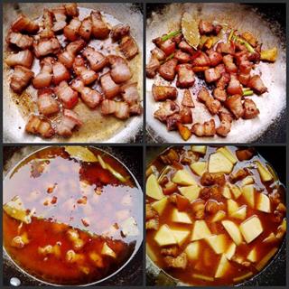 8、五花肉炖烂的时候放土豆块,然后继续炖20分钟。
