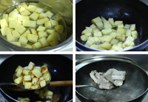 3.锅中放入两勺食用油,油热后放入土豆,小火煎至金黄,捞出备用。