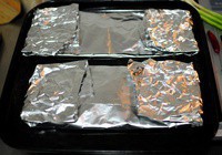 4、另外一片鱼肉同样操作,然后把锡纸包起来。烤箱200度预热之后,放入鱼肉,200度烤11分钟。