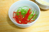 5、葱花和美人椒切丝。