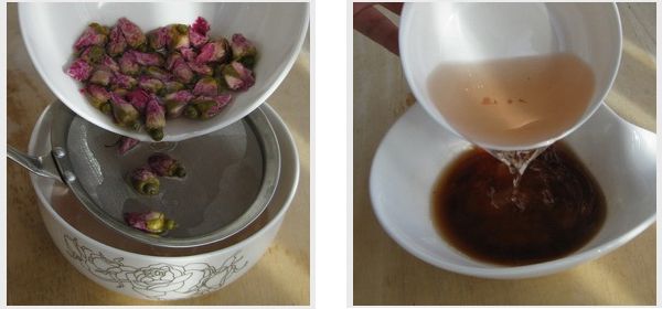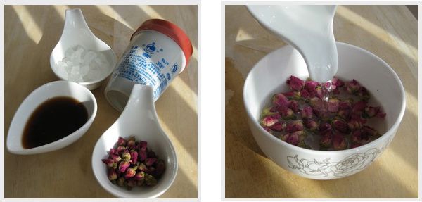 1、用开水将玫瑰花瓣浸泡5分钟。